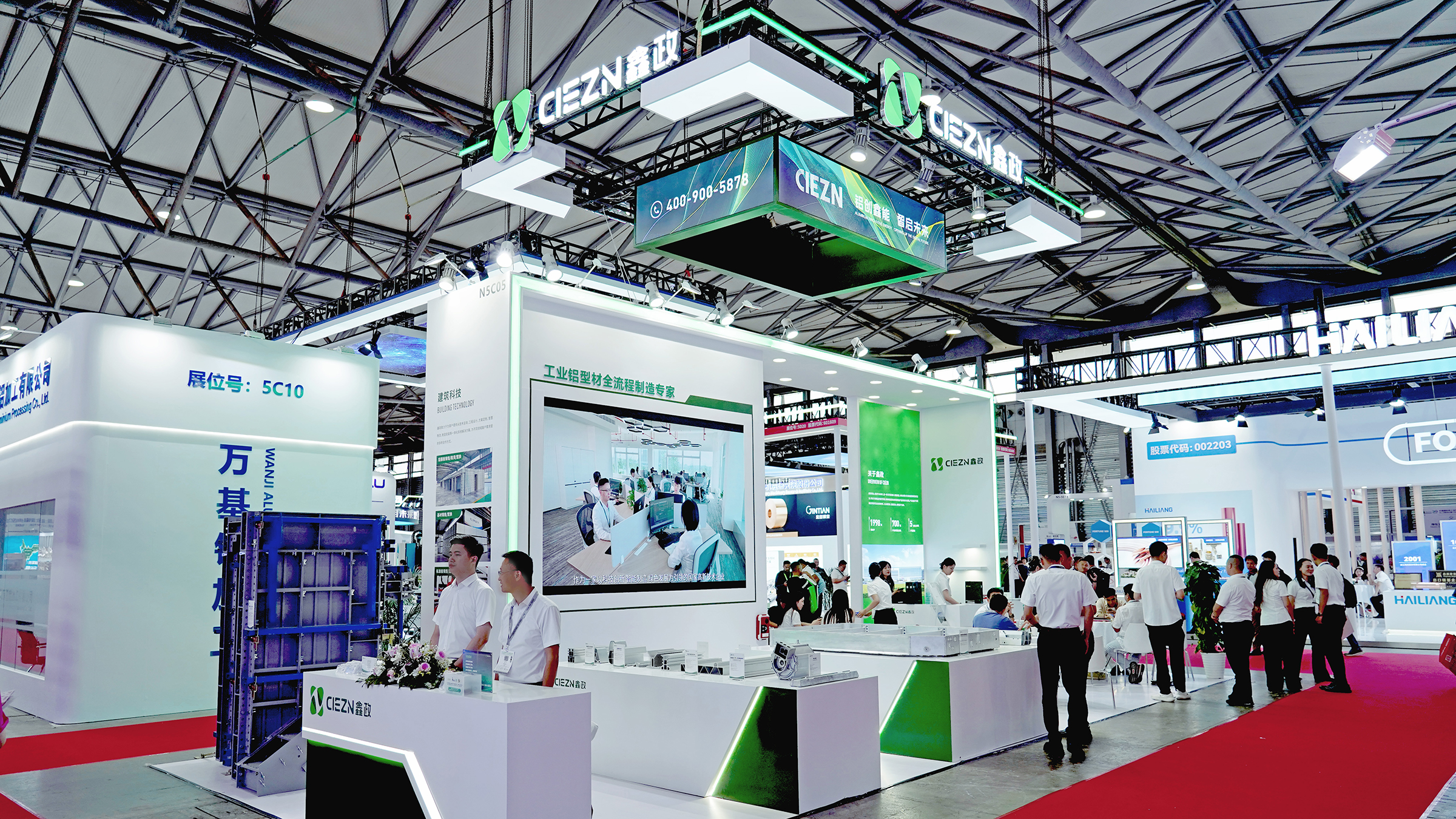 中國(guó)有色金屬工業(yè)協(xié)會(huì)副秘書(shū)長(zhǎng)、再生金屬分會(huì)副會(huì)長(zhǎng)兼秘書(shū)長(zhǎng)王吉位,副秘書(shū)長(zhǎng)李波,上海鋁業(yè)行業(yè)協(xié)會(huì)秘書(shū)長(zhǎng)劉禮林蒞臨鑫政展位交流指導(dǎo),對(duì)我司在綠色產(chǎn)業(yè)取得的技術(shù)創(chuàng)新與發(fā)展成果表示肯定。展臺(tái)核心區(qū)域持續(xù)吸引專(zhuān)業(yè)觀眾到訪問(wèn)詢(xún),新能源車(chē)用鋁型材、工業(yè)鋁型材、鋁模系統(tǒng)等創(chuàng)新產(chǎn)品引發(fā)關(guān)注。